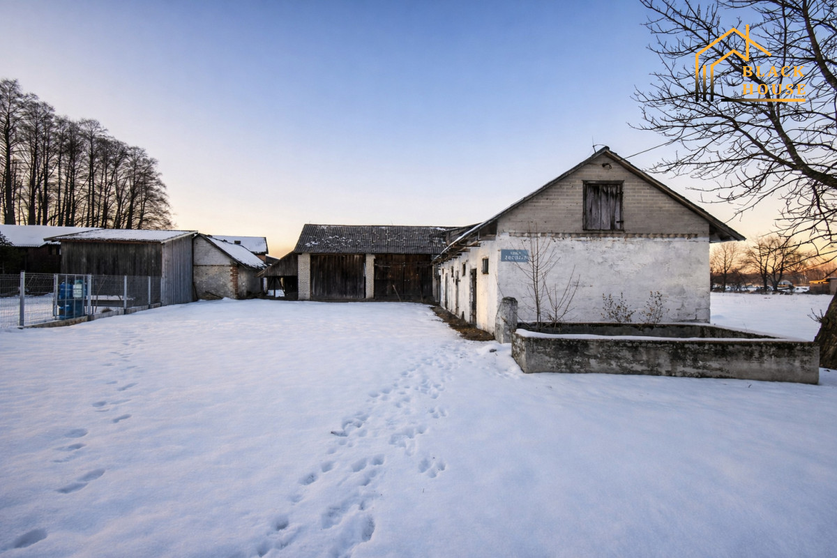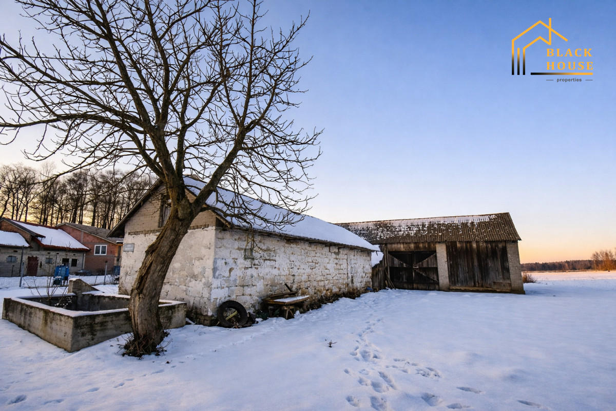 Zabudowania tworzą funkcjonalne i przestronne gospodarstwo, idealne zarówno do prowadzenia działalności rolniczej, agroturystycznej, jak i pod inwestycję lub spokojne życie na wsi.