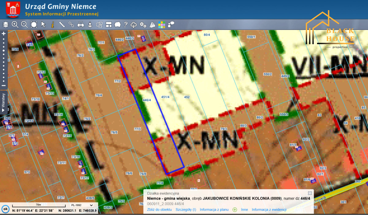 Na sprzedaż działka , położona w miejscowości Jakubowice Konińskie - Kolonia, gmina Niemce, powiat lubelski. Miejscowość znajduje się w bezpośrednim sąsiedztwie Lublina, ok. 9 km od centrum miasta, co zapewnia szybki dojazd oraz dogodny dostęp do infrastruktury miejskiej.