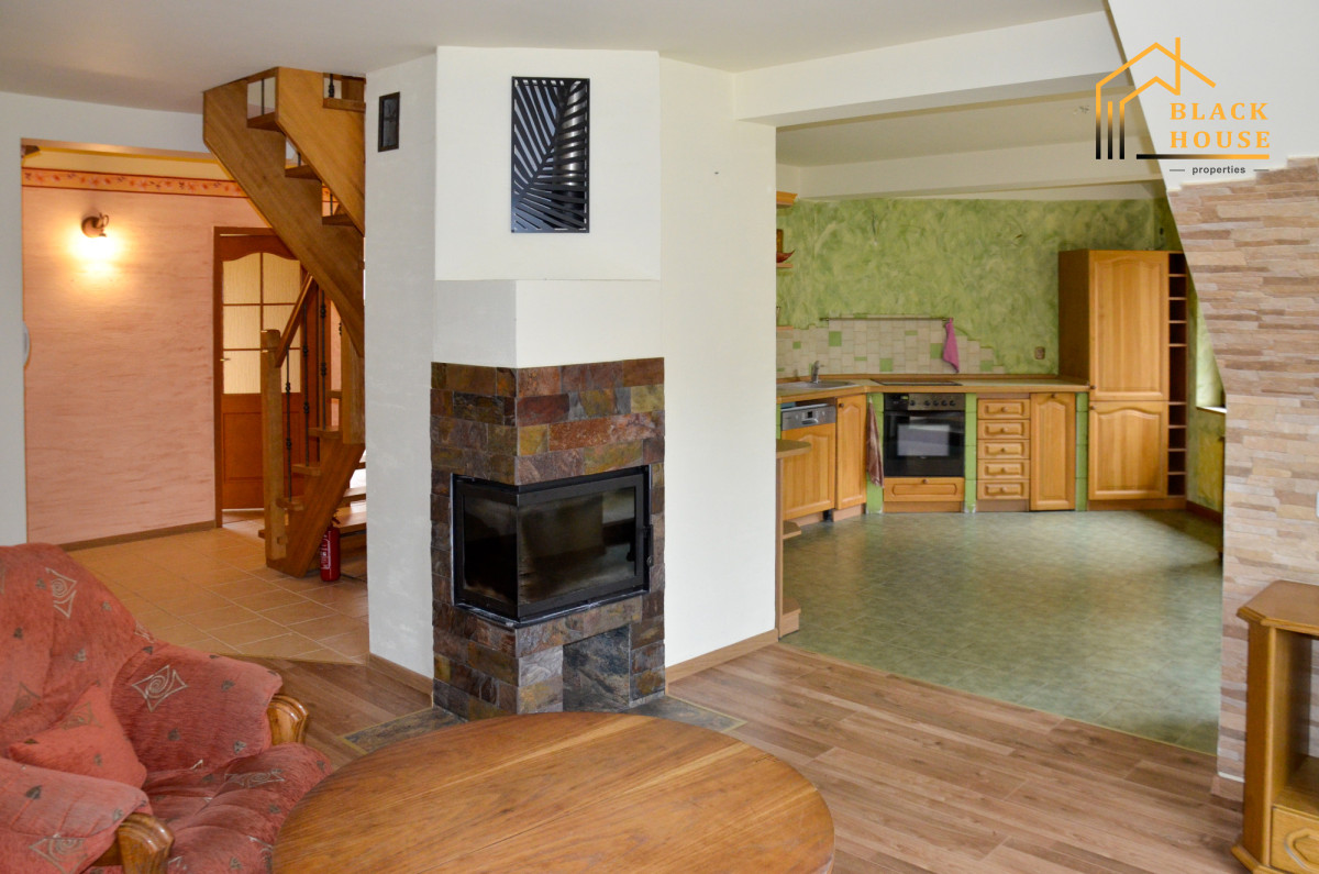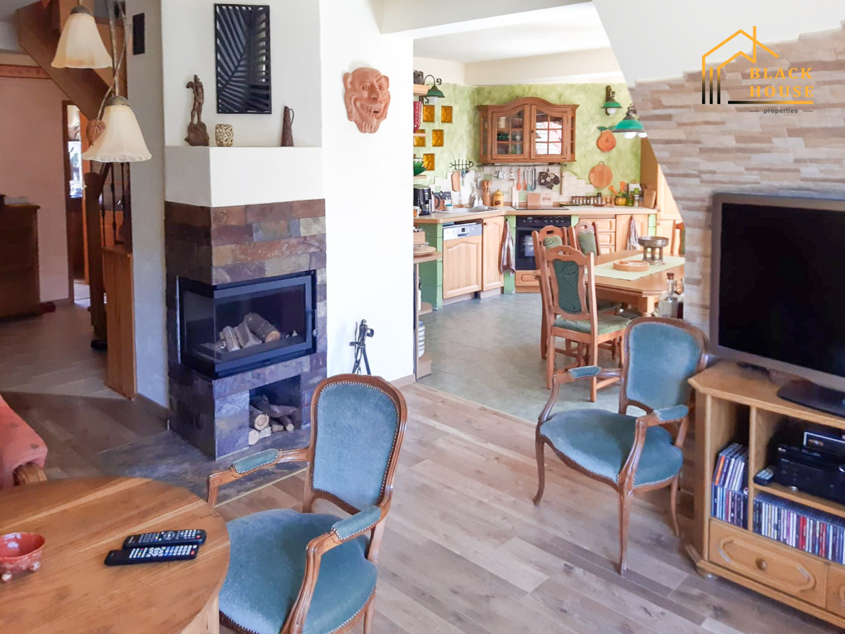 - salon z kominkiem, w którym w zimowe wieczory można ogrzać się przy ogniu (nowy wkład z 2022 r., certyfikat ekologiczny, system rozprowadzania ciepła na piętro),