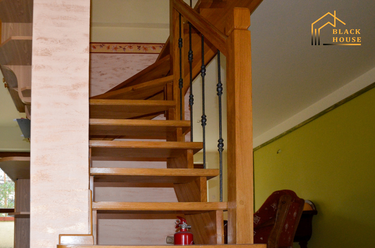 Drewniane, dębowe schody prowadzą na górny poziom, a wnętrze emanuje spokojem i naturalnym ciepłem. Dzięki łagodnym skosom poddasze jest znacznie przestronniejsze, niż wskazuje dokumentacja - kryje w sobie mnóstwo możliwości.