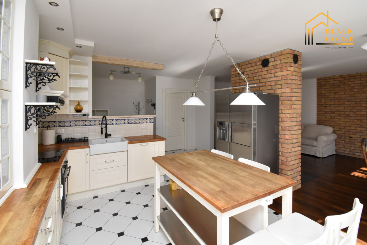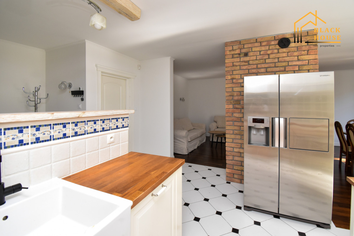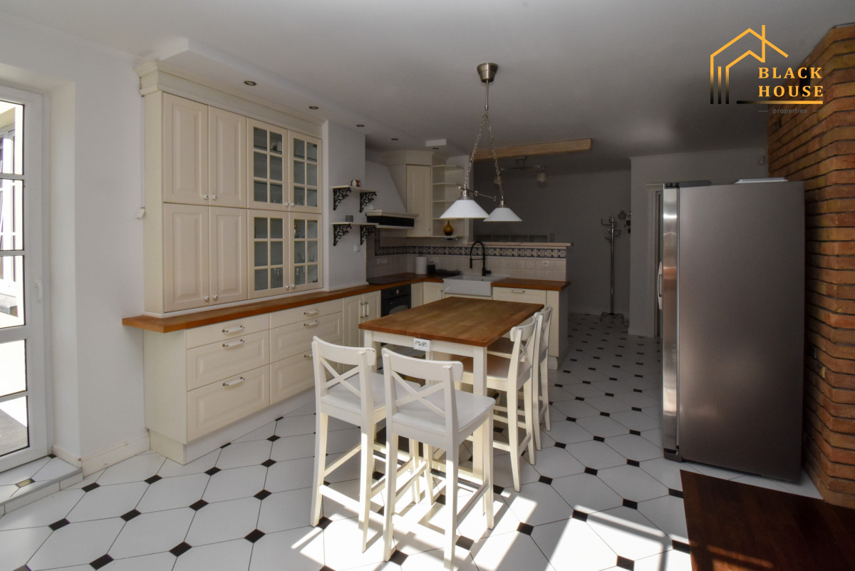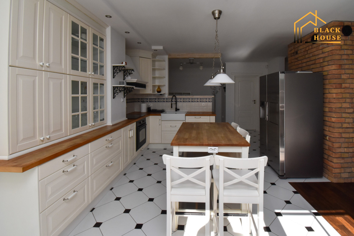 *Ogromna strefa dzienna - salon z kominkiem typu koza, miejscem na duży stół dla 8 osób oraz przestronną kuchnią w stylu amerykańskim.