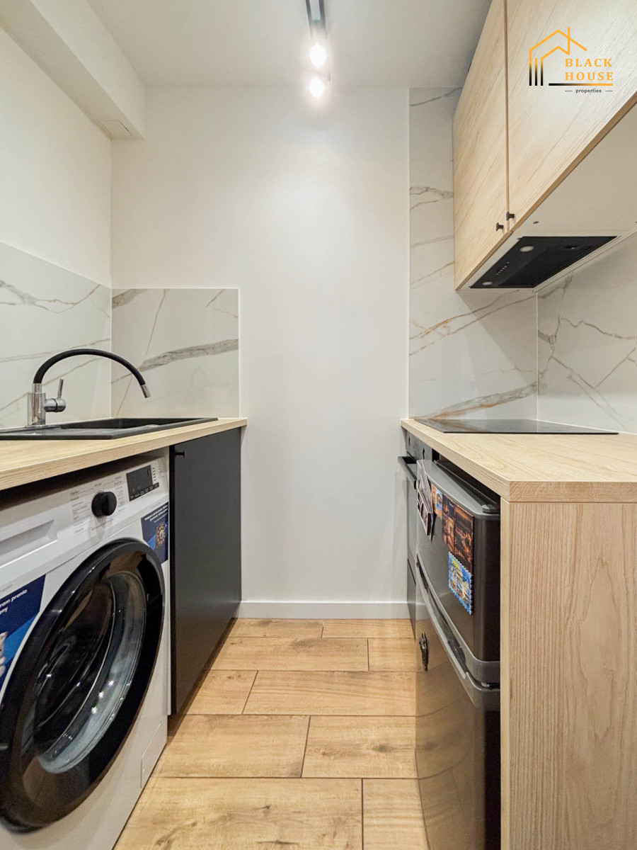 W mieszkaniu znajduje się sprzęt nowy sprzęt AGD tj. pralka, lodówka, kuchenka, okap, piekarnik.