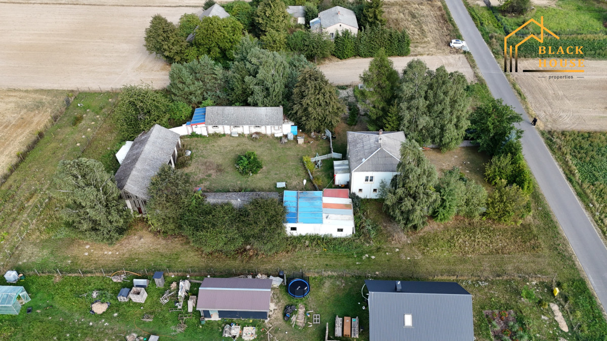 Nieruchomość znajduje się na dużej działce o powierzchni 3667 m², na której mieści się dom mieszkalny oraz zabudowania gospodarcze, idealne do różnych form wykorzystania - od prowadzenia działalności, po hodowlę czy rekreację.